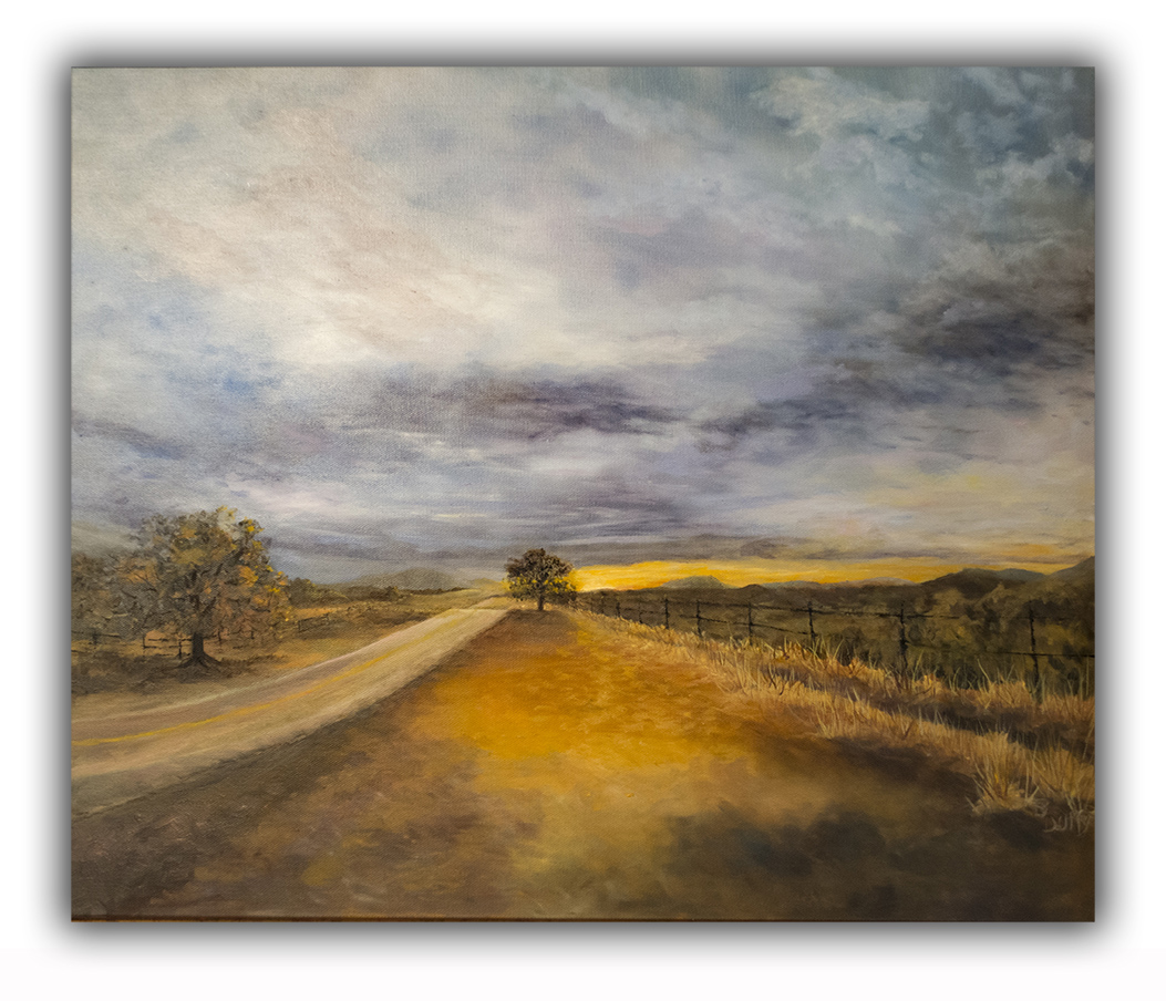 Paintings Leavingcali 1 Temp 72 Oil On Canvas 24" × 20" September 2020 View full size road sunrise sunset tree ← Previous LexTomParktemp 72 Next Joyces 2015 Temp 72 →