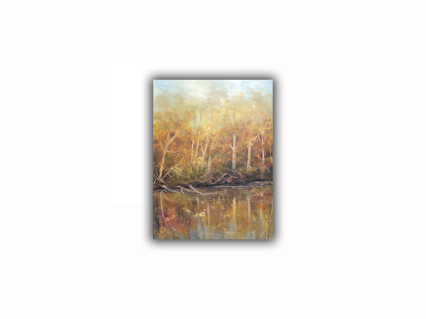 Paintings Spencerwoods Oil On Panel 12" × 16" September 2022 View full size fall trees water ← Previous Rachels 2 Next Steinmans →